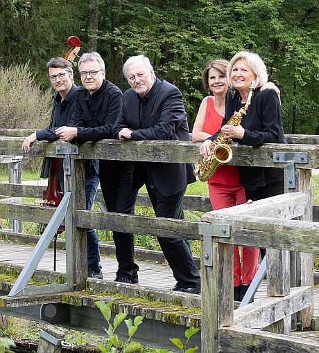 Das sind Evelin Langer (Klarinette, Saxophon, Akkordeon), Florian Kaplick (Klavier und Moderation), Roland Dachauer (Kontrabaß), Roland Schmidt (Drums + Percussion) Sängerin: Stefanie Rüdell